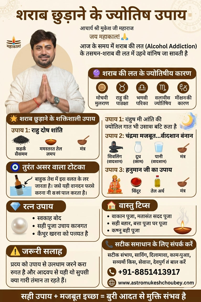 शराब छुड़ाने के ज्योतिष उपाय - शराब की लत (Alcohol Addiction) आचार्य श्री मुकेश जी महाराज