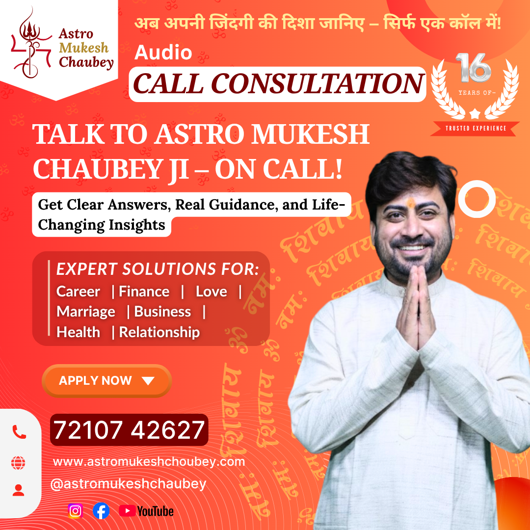 Mukesh Ji is well-versed in Vedic Astrology, Kundli Analysis, Numerology, and Vastu Shastra, and provides personalized remedies to help balance planetary effects.