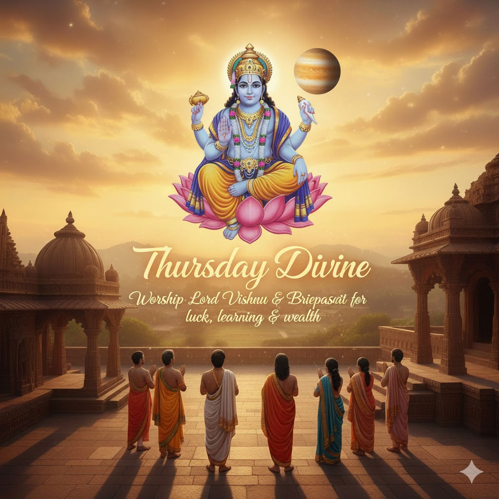 Worship Lord Vishnu & Brihaspati for luck, learning & wealth.