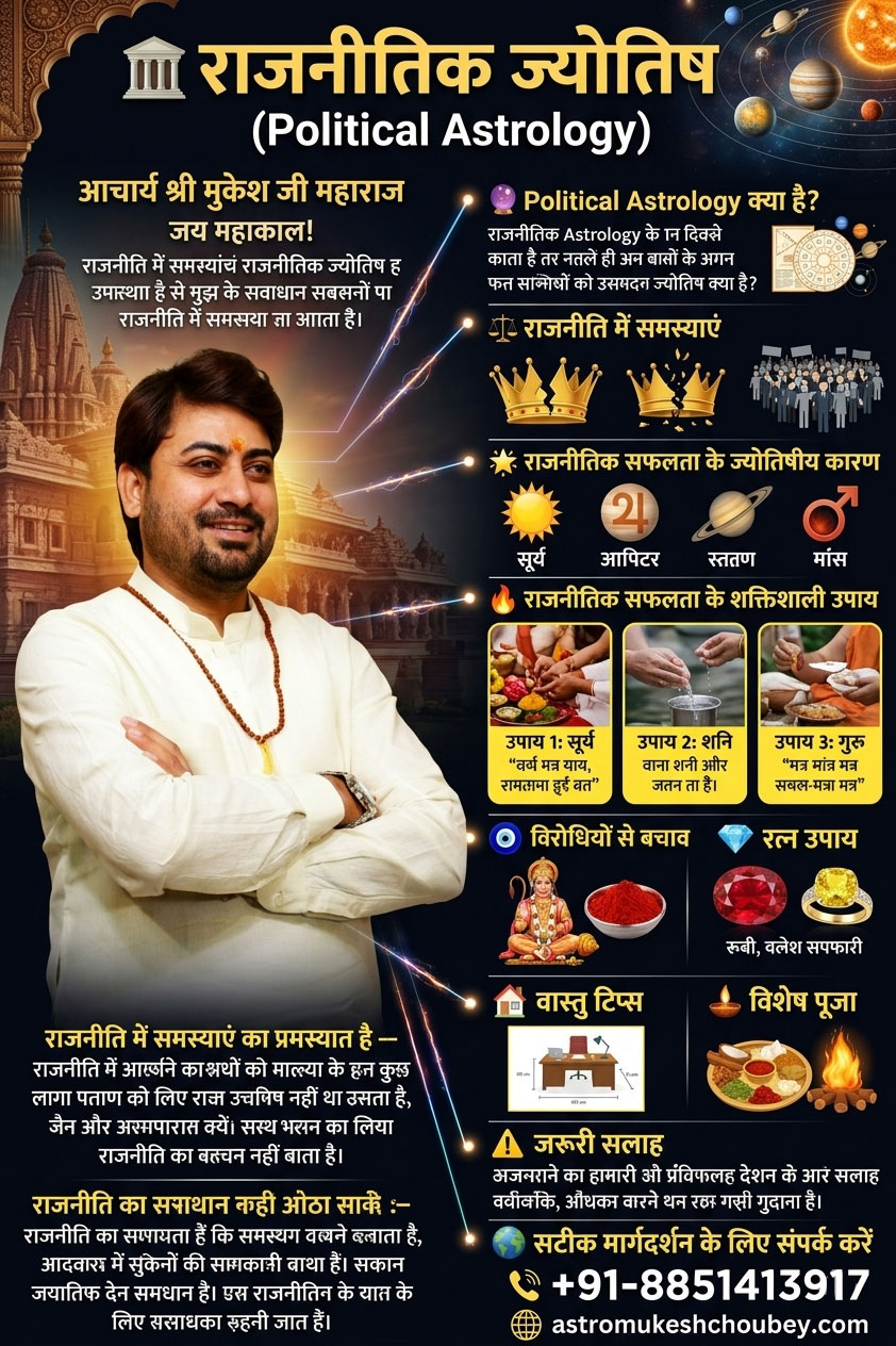 अगर आप राजनीति में आना चाहते हैं या पहले से जुड़े हैं और चुनाव में हार, विरोधियों से परेशानी, पद न मिलना, या छवि खराब होना जैसी समस्याओं से जूझ रहे हैं,