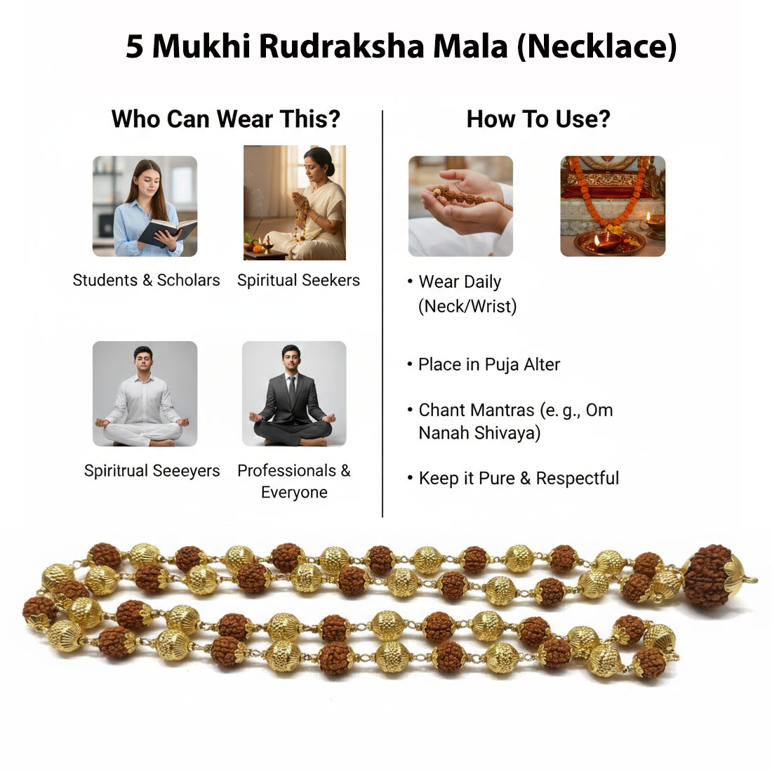 • Authentic Natural 5 Mukhi Rudraksha – spiritually energizing