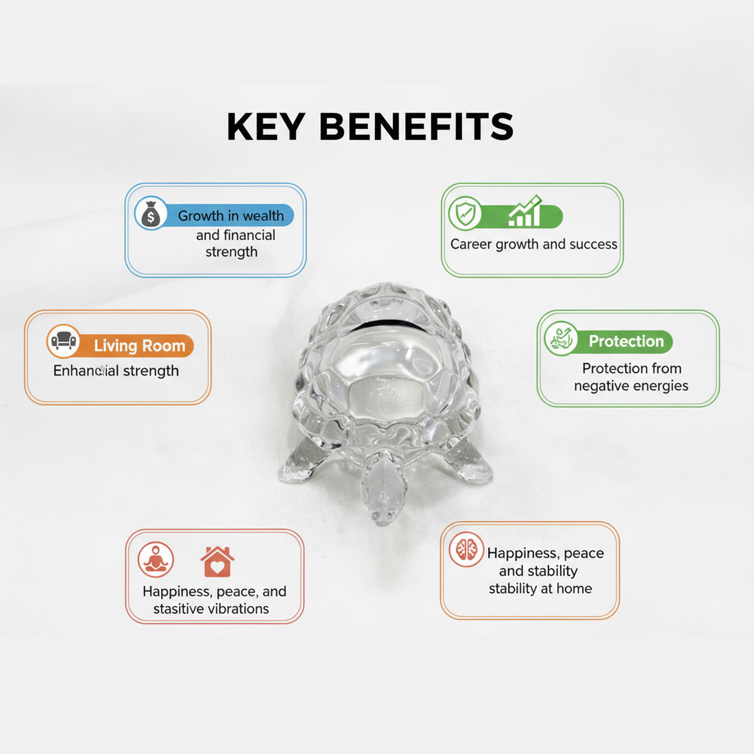 यह Clear Crystal Glass Tortoise वास्तु शास्त्र और फेंग शुई में अत्यंत शुभ माना जाता है।